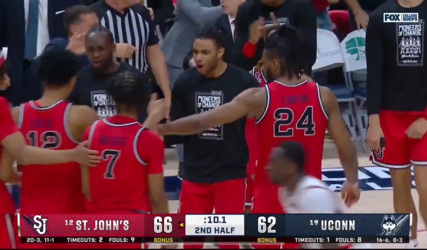 No. 12 St. John’s extend its winning streak to 10 games — its longest in conference play in 40 years — with a comeback victory over No. 19 UConn on Friday night.