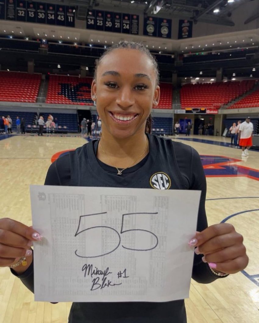 Vanderbilt’s Mikayla Blakes scored a Division I women’s freshman record 55 points on Sunday in a 98-88 overtime victory over Auburn.
