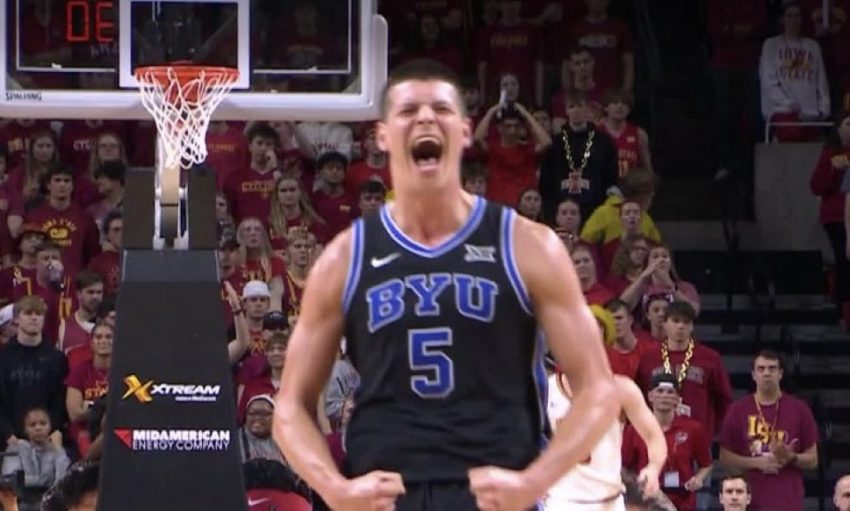 Richie Saunders scored 23 points and No. 23 BYU outlasted No. 10 Iowa State 88-85 in double overtime Tuesday night for its seventh consecutive victory.