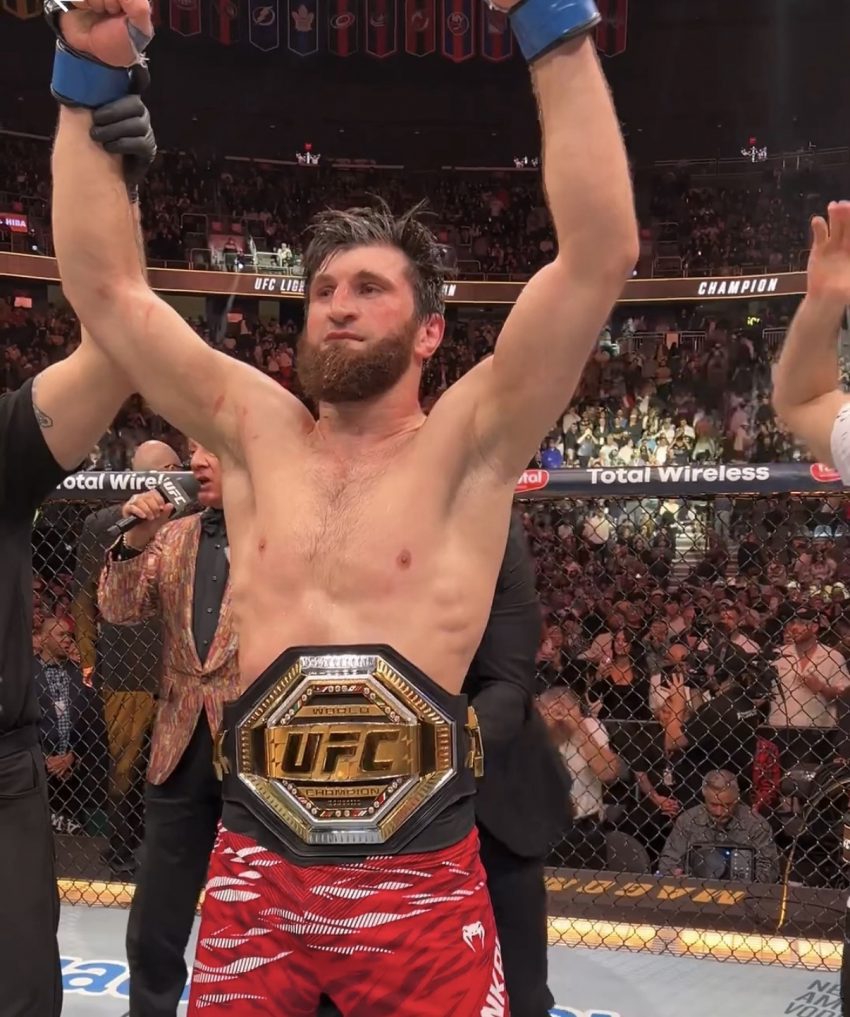 “I can’t even put it into words. It’s been such a long wait,” Ankalaev said through an interpreter in his postfight interview. “And here’s my dream – it’s on my waist.”