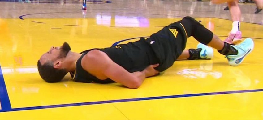 Curry suffered the injury falling hard on his back following a contested drive to the basket. He went to the locker room during a timeout.