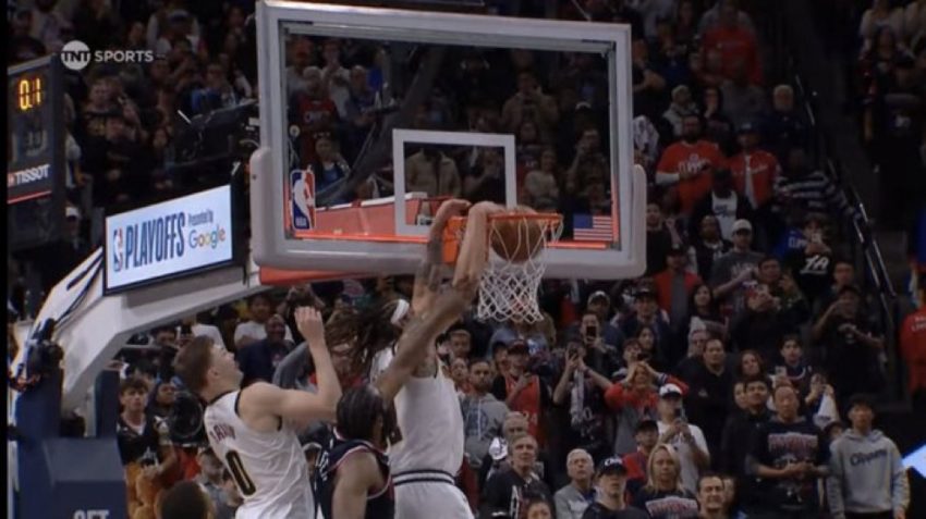 Gordon corralled a fadeaway shot attempt from Nikola Jokic and finished it with a two-handed slam. Officials reviewed the play for several minutes before confirming the basket.