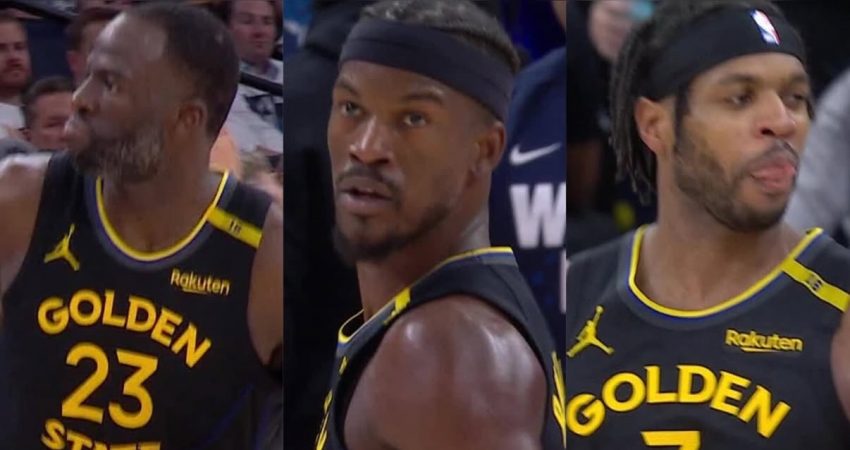 Buddy Hield and Draymond Green delivered from 3-point range with Steph Curry suddenly sidelined by a hamstring strain, and Jimmy Butler gave the Warriors a vintage all-around performance in an inspired 99-88 victory over the stumbling Timberwolves that opened the second-round series on Tuesday night.