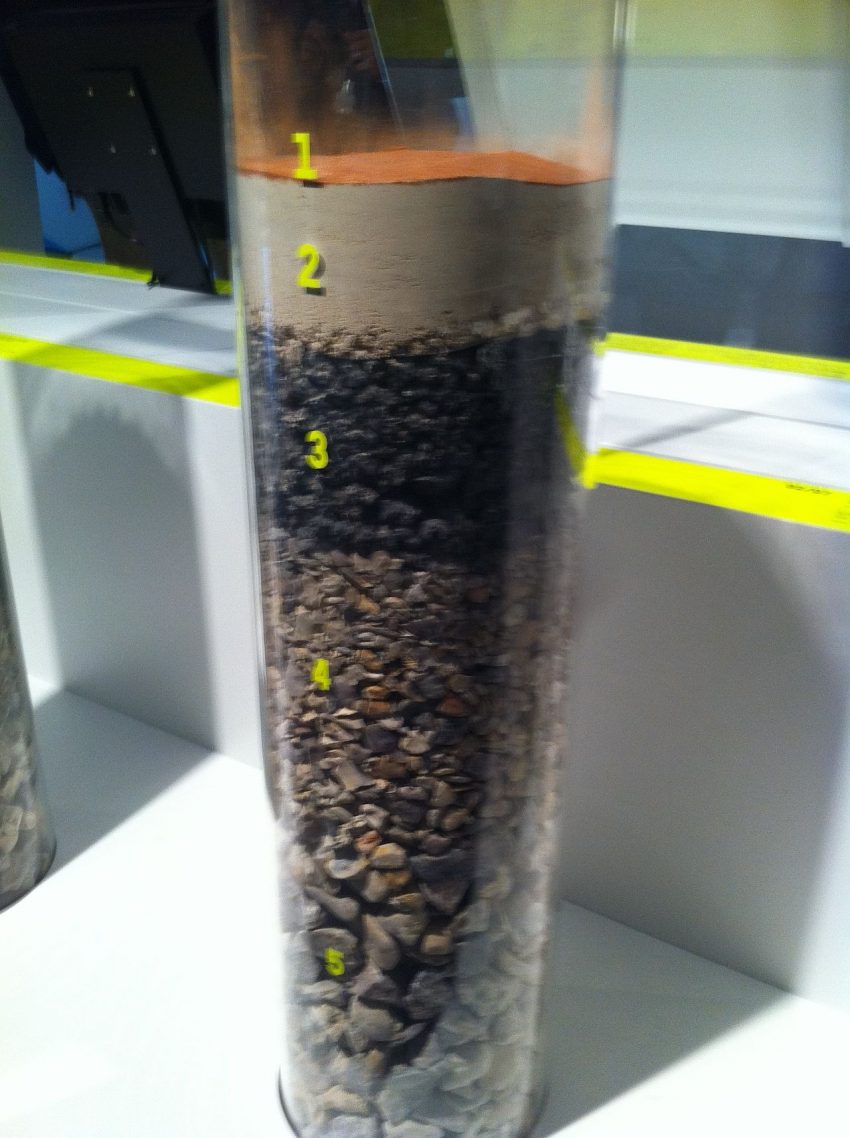 Just above the drainage rock, a layer of crushed gravel provides added stability and further aids drainage.