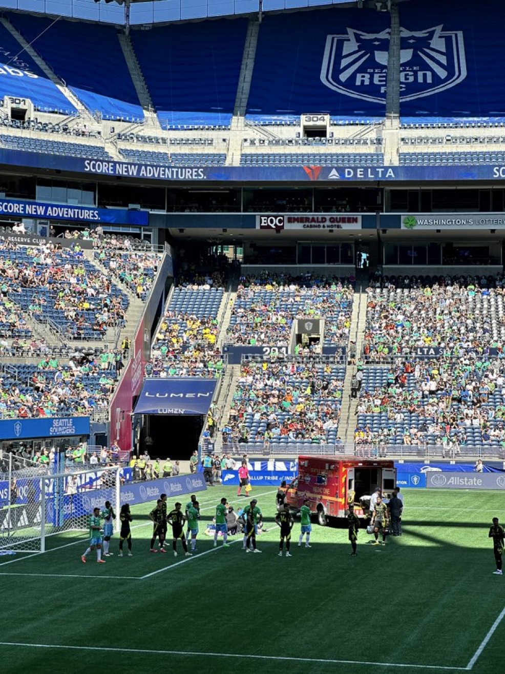 Frei jumped forward to make a play on a free kick, and as he came down, his head collided with the knee of a Crew player. Frei dropped to the turf at Lumen Field and teammates signaled to the sideline for help.