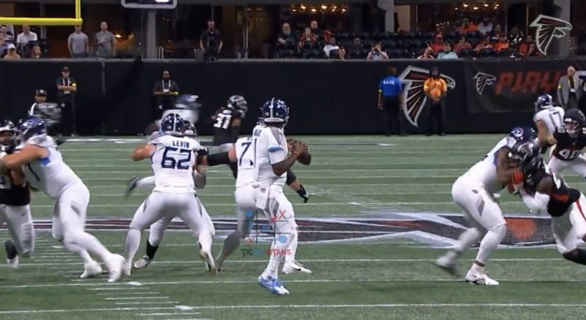 Falcons backup quarterback Emory Jones was stopped on a fourth-down run near the Tennessee 20 with 2:57 remaining. Jones was shaken up on the hit by linebacker Amari Burney and cornerback Jemari Harris. Jones walked off the field with assistance.