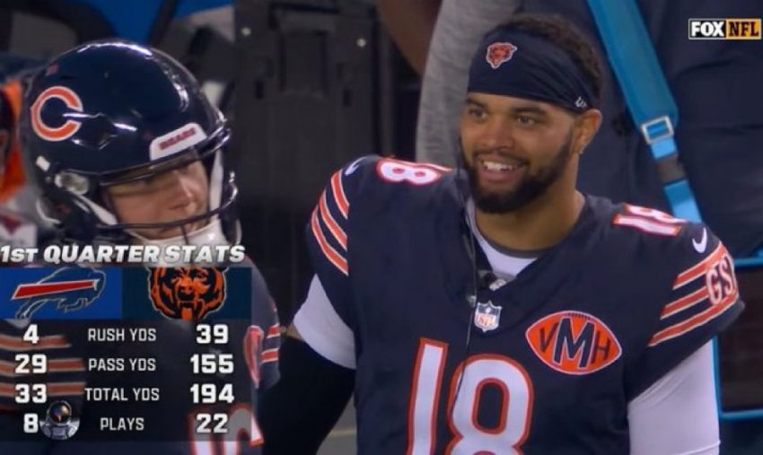 The first pick in the 2024 draft completed throws of 18 yards to rookie first-round pick Colston Loveland and 29 yards to tight end Cole Kmet on a game-opening 92-yard march that concluded when Zaccheaus snagged a throw in the middle of the field on third-and-6, hurdled a tackler and went the distance.
