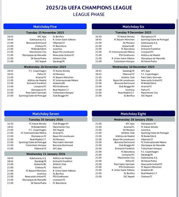 2025/26 UEFA Champions League Fixtures: Full Schedule and Key Matches