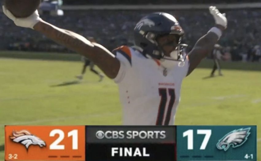 The Broncos batted down Jalen Hurts’ last-gasp pass on the final play of the game to send the Super Bowl champions to just their second loss in their last 22 games.