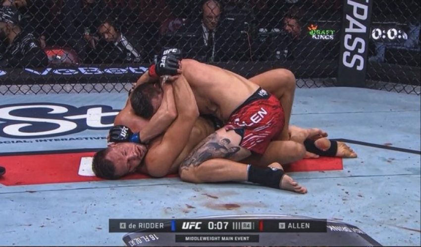 Brendan Allen used his grappling to overwhelm De Ridder en route to a TKO victory in the UFC Vancouver main event Saturday night at Rogers Arena. De Ridder was visibly exhausted at the end of the fourth round and retired in his corner. Announcer Joe Martinez said De Ridder couldn’t continue.