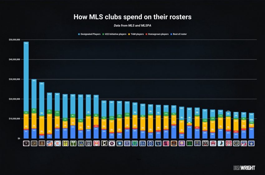- Top spenders: Inter Miami, Toronto FC, LA Galaxy, Chicago Fire, Nashville SC.