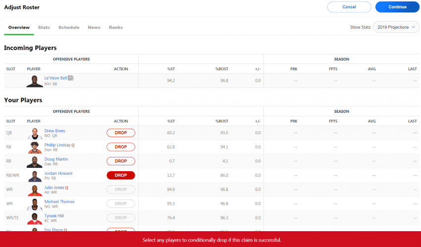 • After a successful claim, the winning team moves to the back of the waiver order.