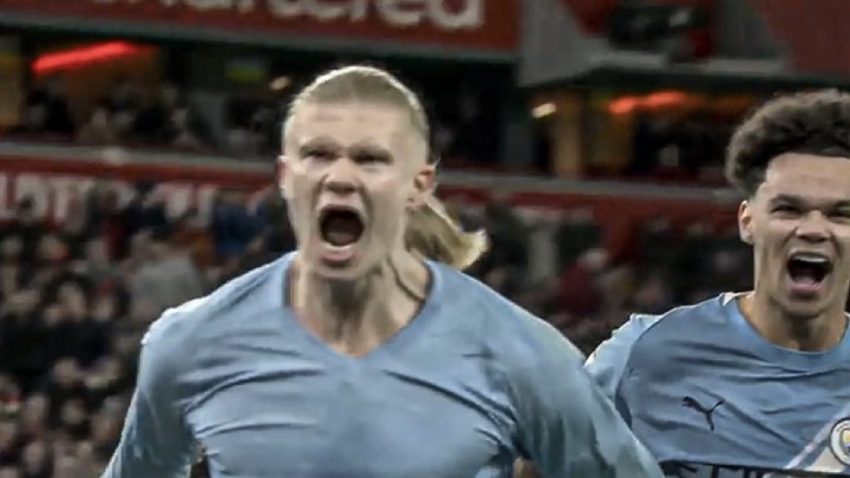 Erling Haaland’s stoppage-time penalty earned Manchester City a dramatic 2-1 win at Liverpool on Sunday to reduce Arsenal’s lead at the top of the Premier League back to six points.