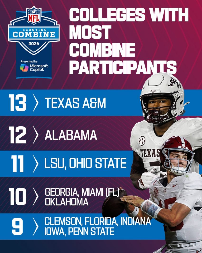 The 2026 NFL Scouting Combine, held February 23–March 2 in Indianapolis (with on-field workouts primarily from February 26–March 1), brings together 319 of the top draft-eligible players for athletic testing, medical evaluations, interviews, and team meetings. Texas A&M’s haul of 13 participants surpasses its previous program high and outpaces powerhouses like Alabama (12 invites), Ohio State and LSU (tied at 11), and Georgia, Miami, and Oklahoma (10 each).