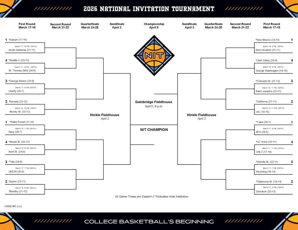 The 32-team field for the 2026 National Invitation Tournament was announced Sunday, March 15.