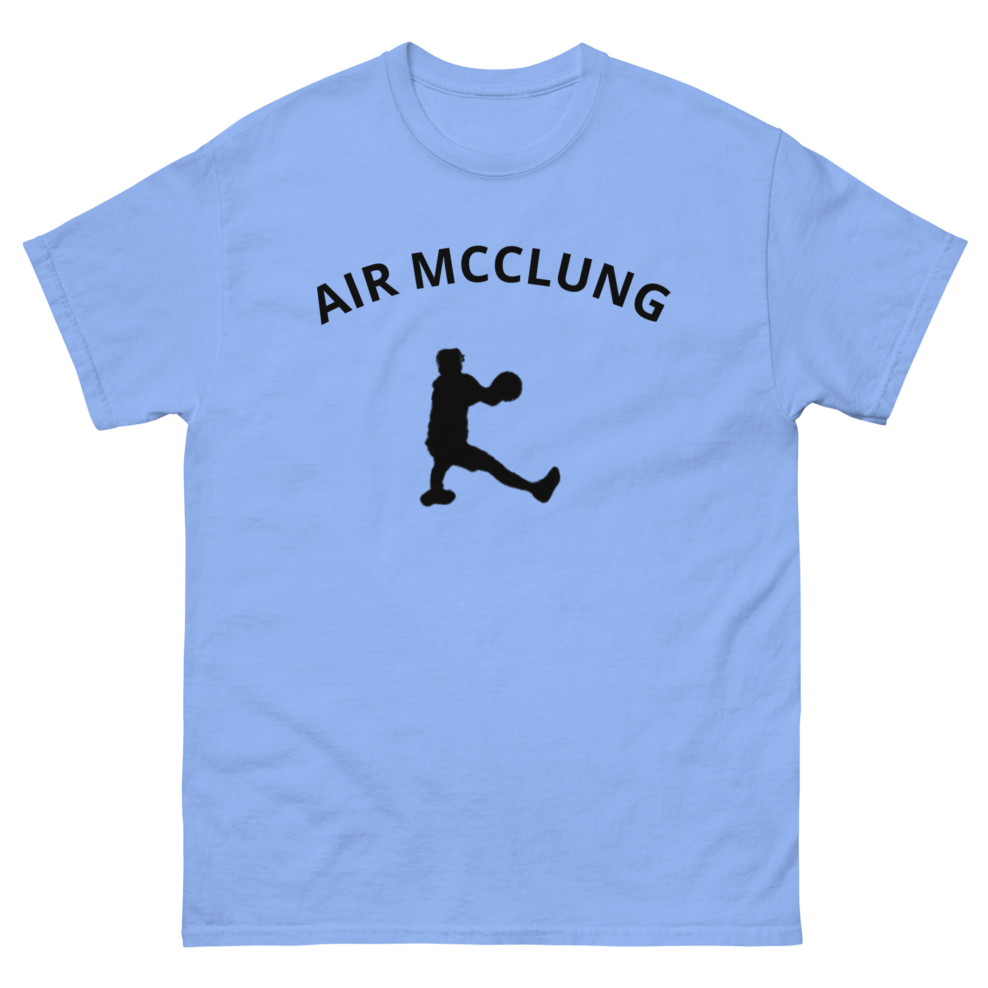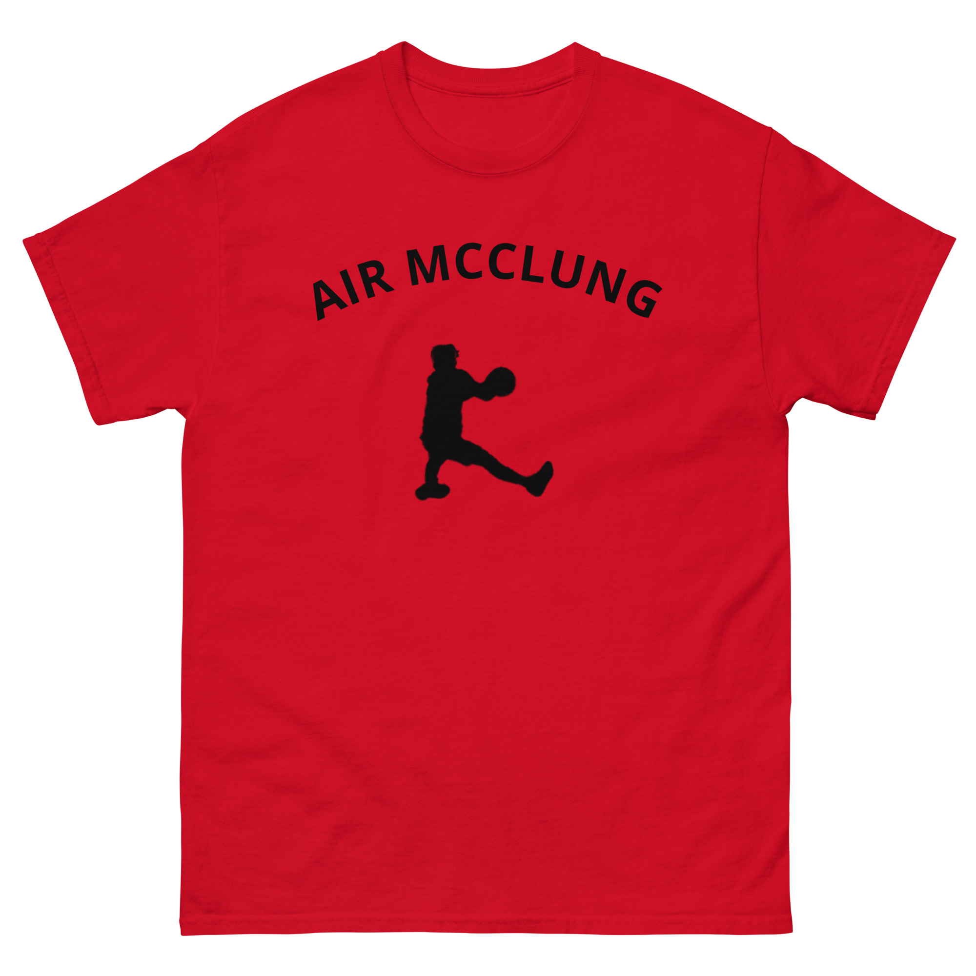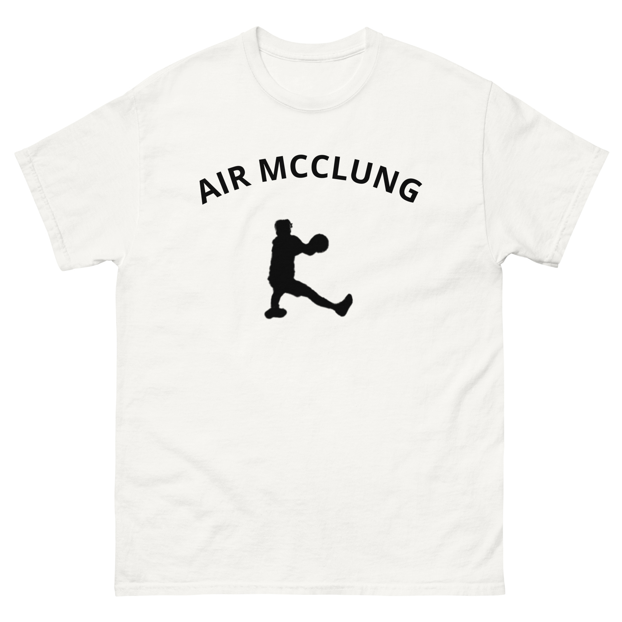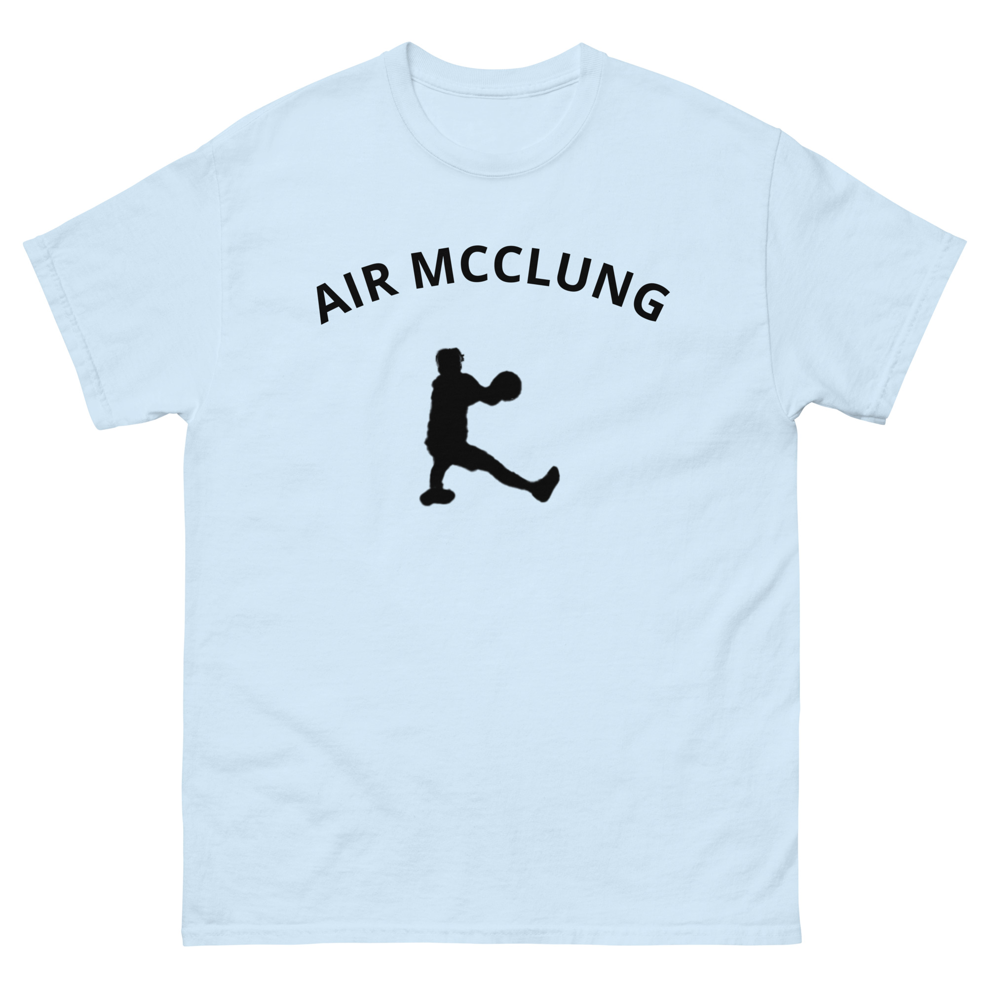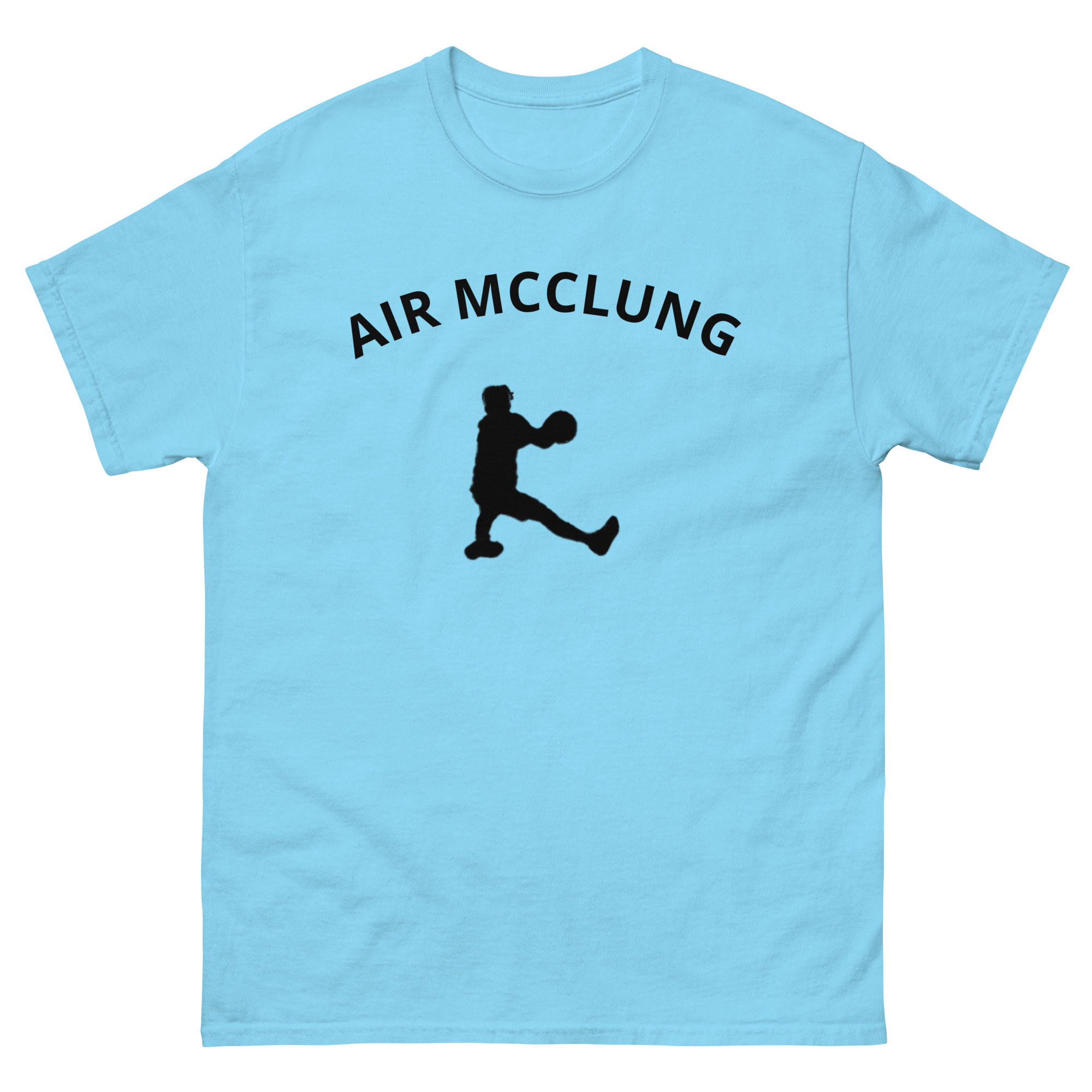 The 100% cotton AIR MCCLUNG unisex classic tee, inspired by NBA G-League and NBA All Star Mac McClung. It sits nicely, maintains sharp lines around the edges, and goes perfectly with layered streetwear outfits. Plus, it’s extra trendy now!