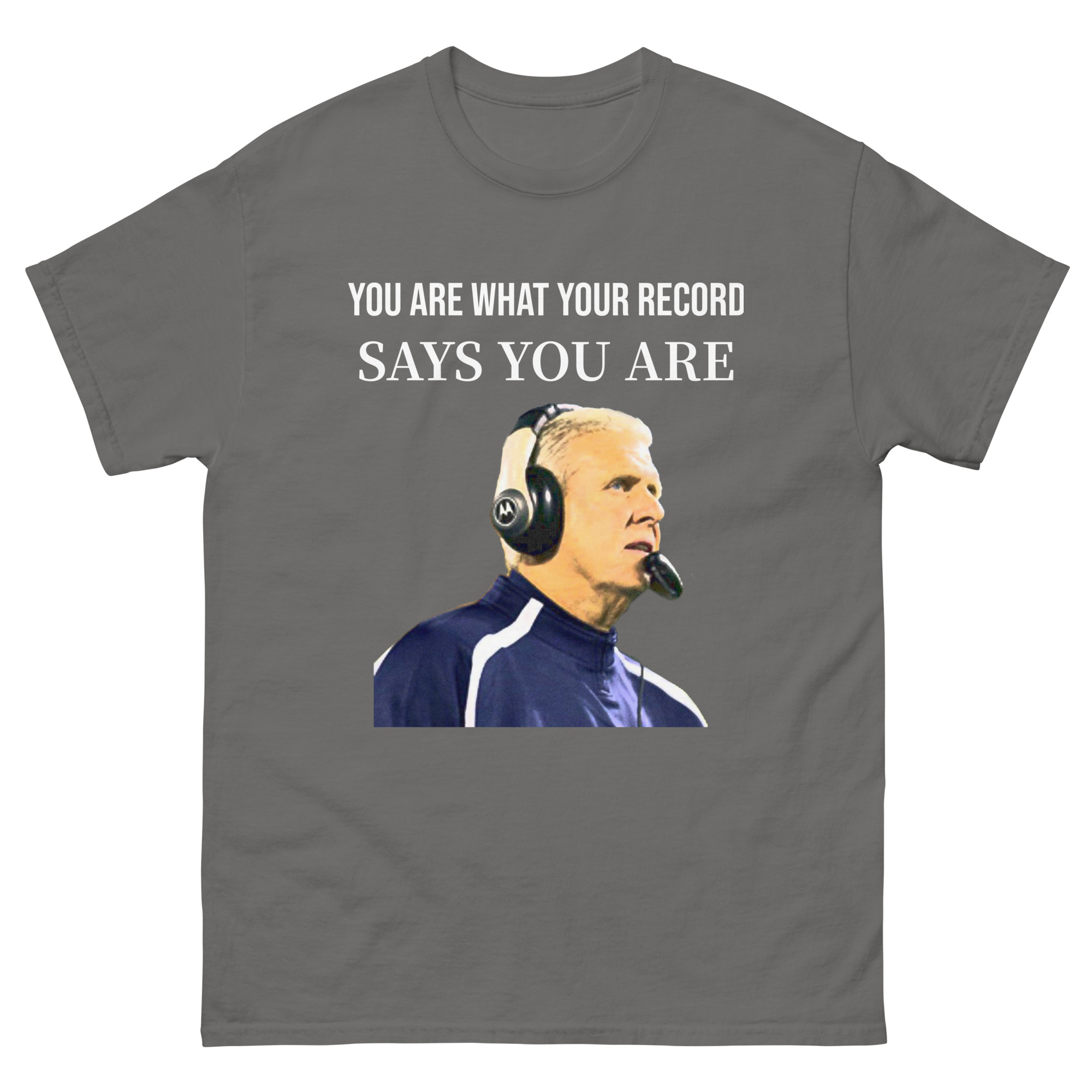Enjoy this Bill Parcells “You are what your record says you are” 100% cotton men’s classic tee will help you land a more structured look. It sits nicely, maintains sharp lines around the edges, and goes perfectly with layered streetwear outfits. Plus, it’s extra trendy now!