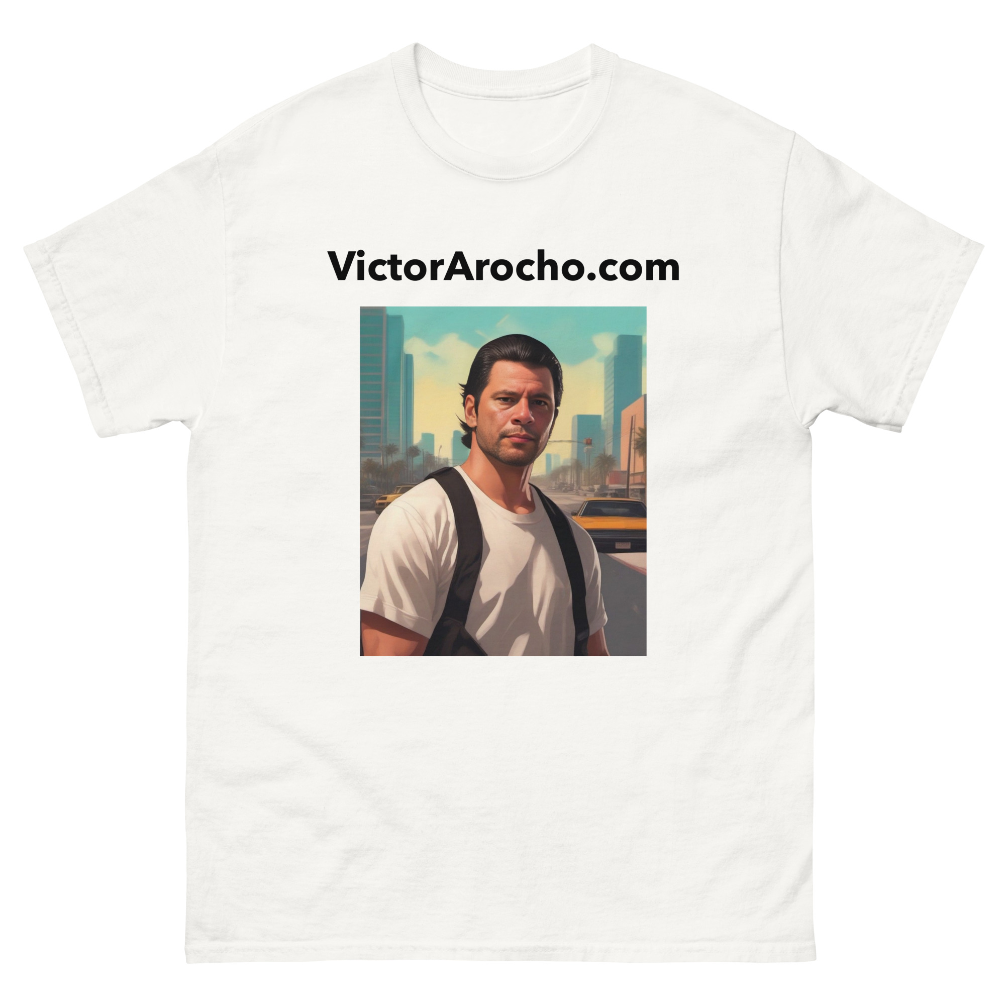 Jersey Boys Sports Talk star Victor Arocho, with his own shirt: “VictorArocho.com”.
